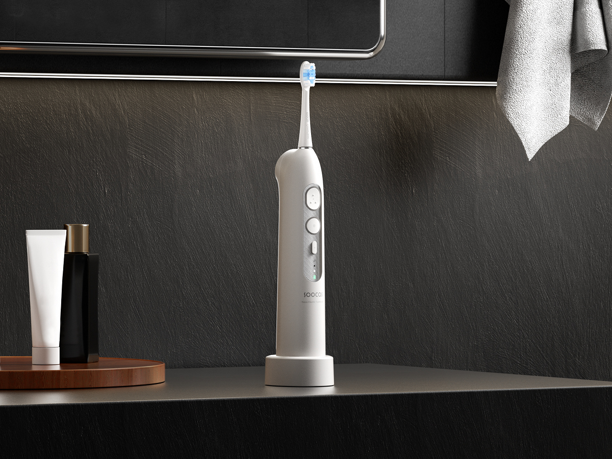 The Neos 2-in-1 Electric Toothbrush is an electric toothbrush that vibrates at high frequency. A water tank is built into the handle of the toothbrush and jets of water shoot through a hole in the brush head to help clean in-between teeth and along the gum line. The Neos is designed and produced by Soocas, a company founded in 2015 by Even Meng and Fan Di Meng, that focuses on research and development of personal care products. They focus on innovative technologies the help improve the standard of living of their customers. Soocas has been granted over 320 technology patents.