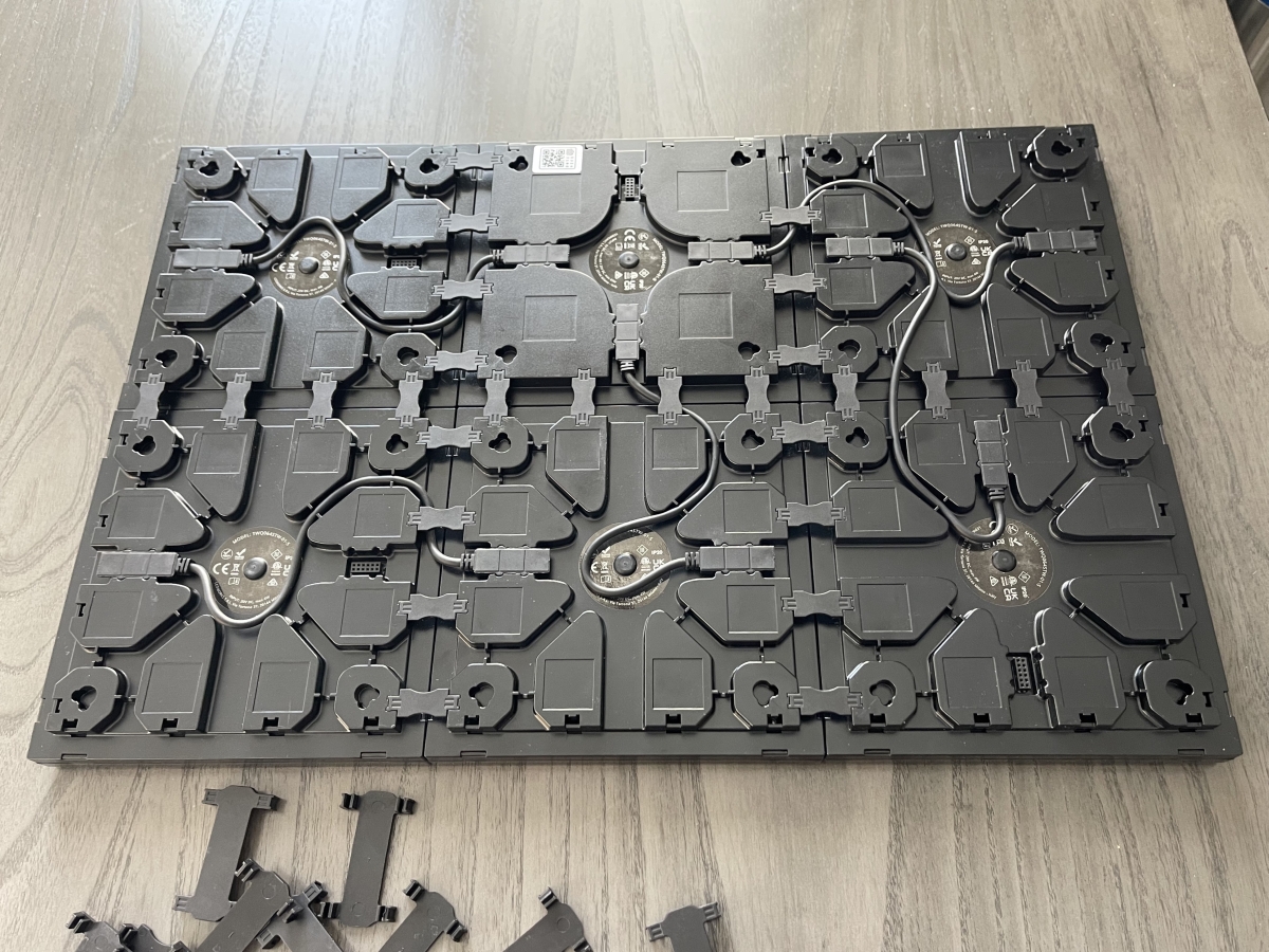 Once the panels are all connected, you can plug in the master panel. As you can see in the picture below, only that panel is lit. That’s because the lights haven’t been mapped yet. You’ll use the Twinkly app for that remaining part of the setup.