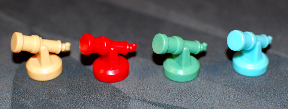 The plastic telescope pawns are simple but cute. Since they use the common red-green-blue-yellow set for the pawns, scoring markers, and player boards, there might be some difficulty for color-blind players—check the photos here to see if you have any issues telling any of the components apart.