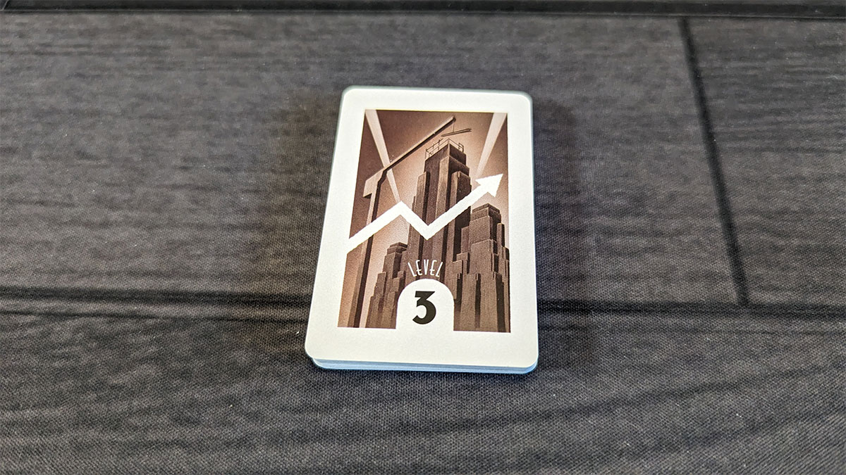 Expanding the company is also when you can play a level card, which allows you to add a building on top of any existing building, regardless of the number on the space. Note that no building can be more than 4 pieces tall.