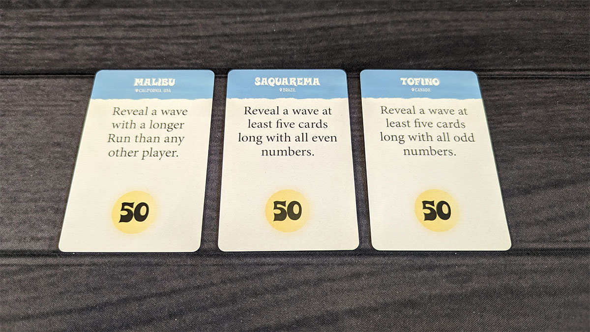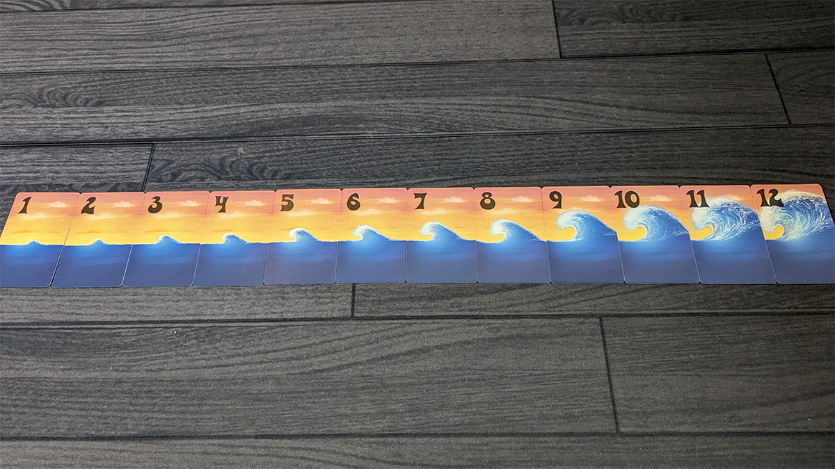 Second, starting from the surfer’s location, reveal each wave card one at a time, moving to the left. Continue doing this until one of the following happens: