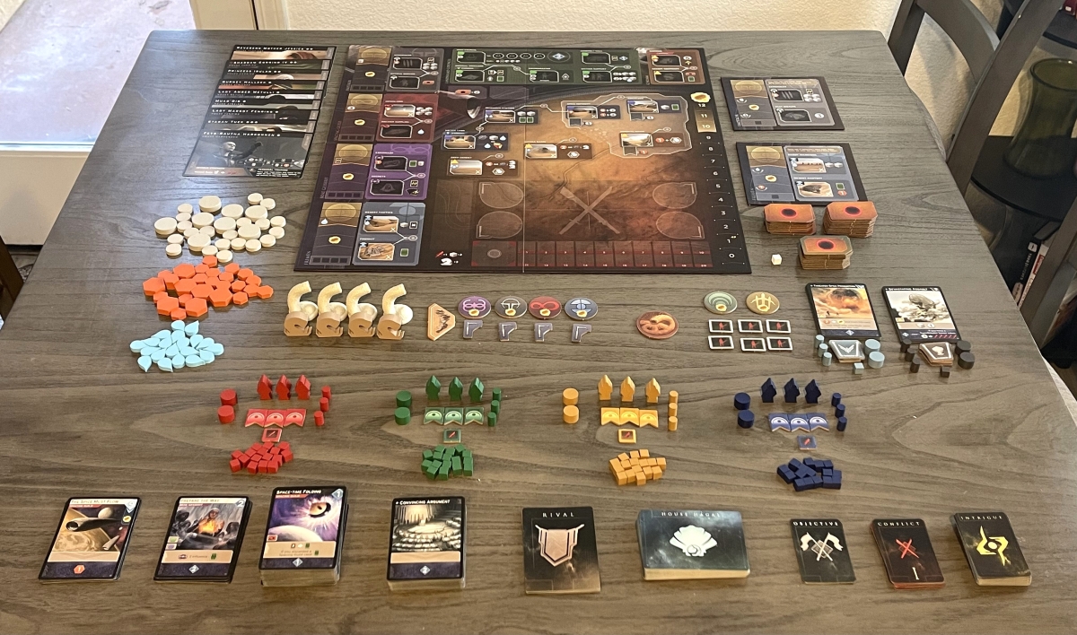 Many of the components, such as the wooden resource tokens, are identical to those found in the original Dune: Imperium. You can read about those in my review of that game.
