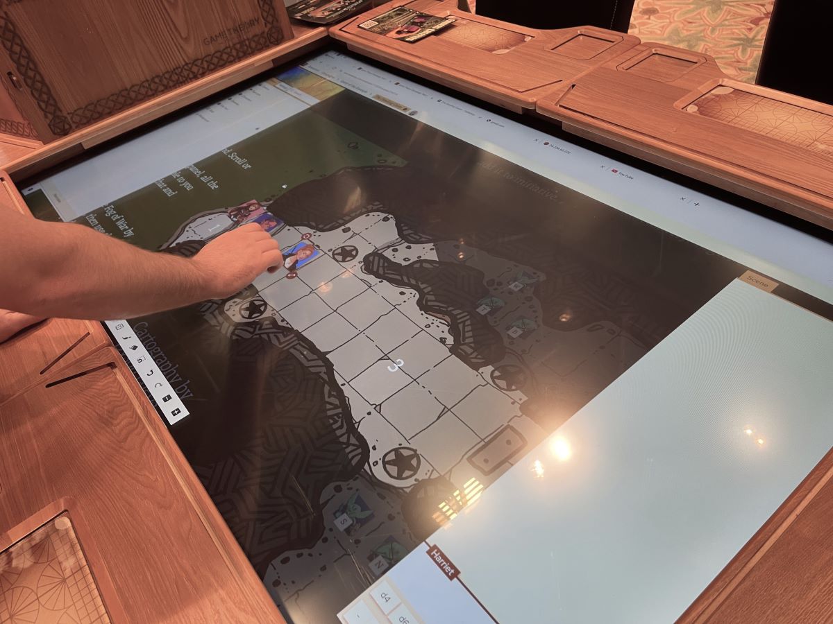The 2-hour mini-adventure went flawlessly, with Duke running the encounter on the Tableplop VTT, and all of the players referencing their characters on their phones using D&D Beyond. While it may not appeal to the pen and paper purists, the adventure showed that it can be very enjoyable to incorporate the digital at the physical tabletop. We did encounter a bit of lag on the touchscreen, but that was largely due to the particular Android computer used in the prototype. We were assured that a speedier model was going to be used in the production version of The Arena, to ensure a much faster response time for the touch display.