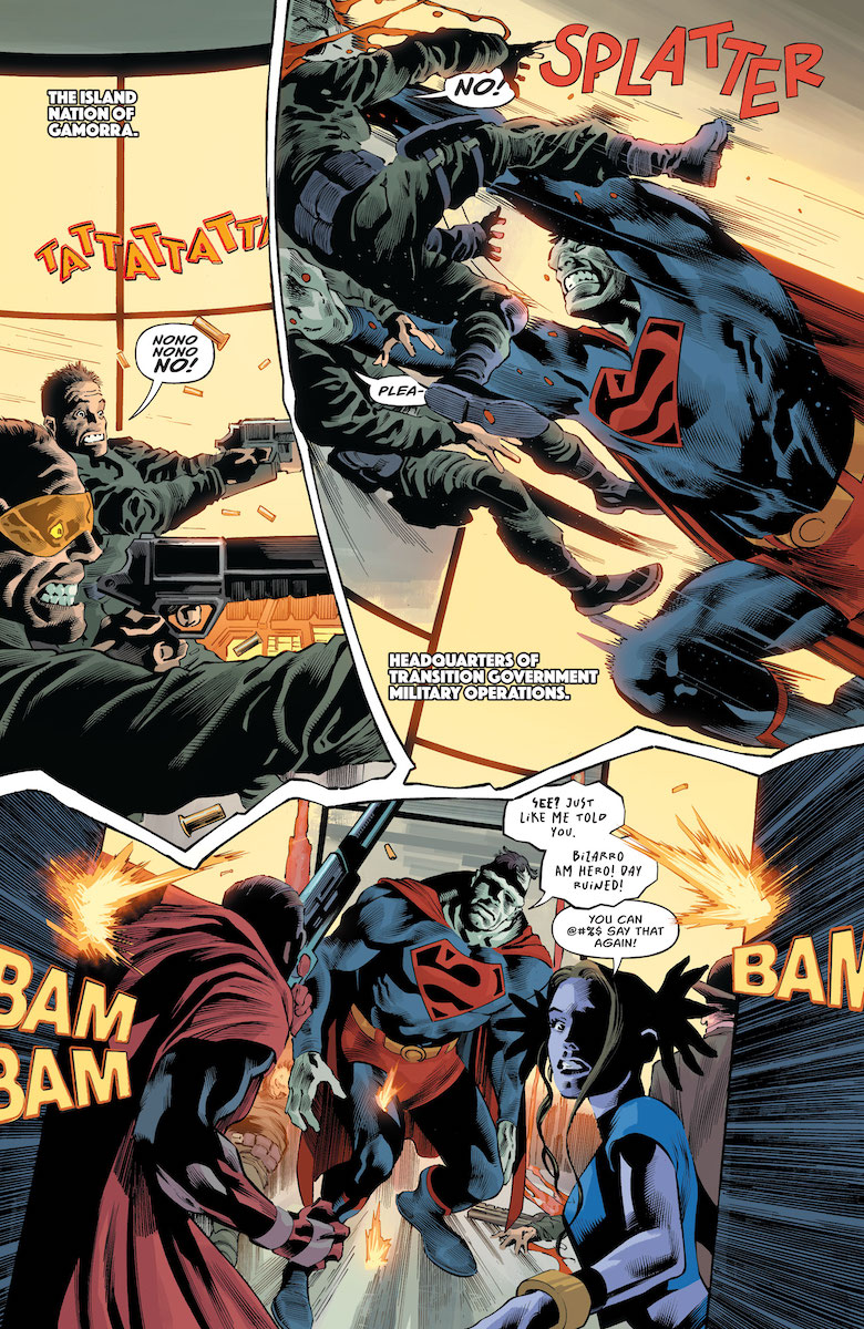 Ray: One of the big things that has been building as we head towards the Absolute Power event is that Amanda Waller has absolutely no scruples left. While she previously showed no hesitation to capture or even kill villains, she’s now expanded to heroes and civilians alike – placing brain bombs in their heads and sending them on missions. Her new Suicide Squad contains several heroes and antiheroes, and even a family member, but none is more key to the invasion of Gammora than Nia Nal, aka Dreamer—a sweet rookie hero who is repulsed by everything she has to do here. The first part of this issue is a chaotic action segment as Waller engineers her own coup, targeting the current leader of Gammora – who happens to be the mother of Jon Kent’s boyfriend Jay Nakamura. But as the first phase of the plan reaches its conclusion, it’s time for an even more compelling showdown.