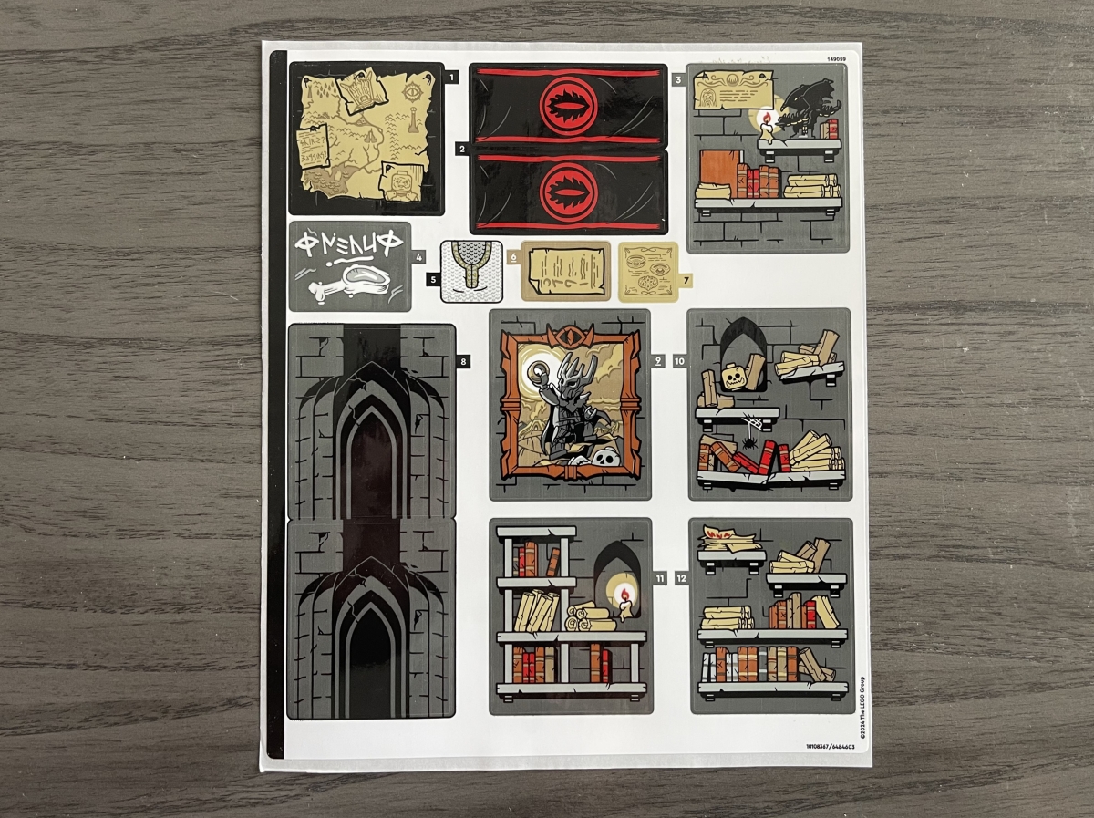 The LEGO Icons The Lord of the Rings: Barad-dûr set doesn’t dominate the table quite as much as Rivendell, as it only has 40 bags versus Rivendell’s 49. But it’s still an impressive amount of LEGO bricks! There’s just a single sticker sheet included in the set.