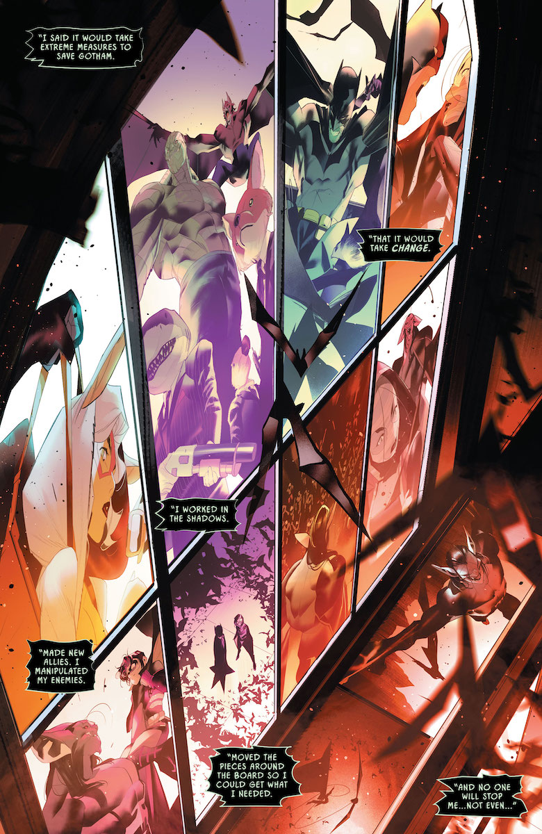 Ray: The conclusion of this first mega-sized arc, pitting Batman and Robin against a much more sinister and homicidal Man-Bat as well as several faces from their past, delivers as father and son battle to save Gotham from mutation. Man-Bat has unleashed an army of mutated bats, seeking to transform all of Gotham and beyond into hybrids like him. We’ve seen this plot before (most memetically at the competition) but the stakes are high here. This issue also neatly redeems one of the big issues I’ve had with this arc—this just doesn’t feel like Man-Bat, either form. The reveal at the end that this is yet another personality that’s emerged from Langstrom’s psyche without overwriting either of the previous ones nicely escalates the threat while not losing what makes this character great. The main plot might be wrapped up a little too briefly, but it works with how much else there is to explore here.