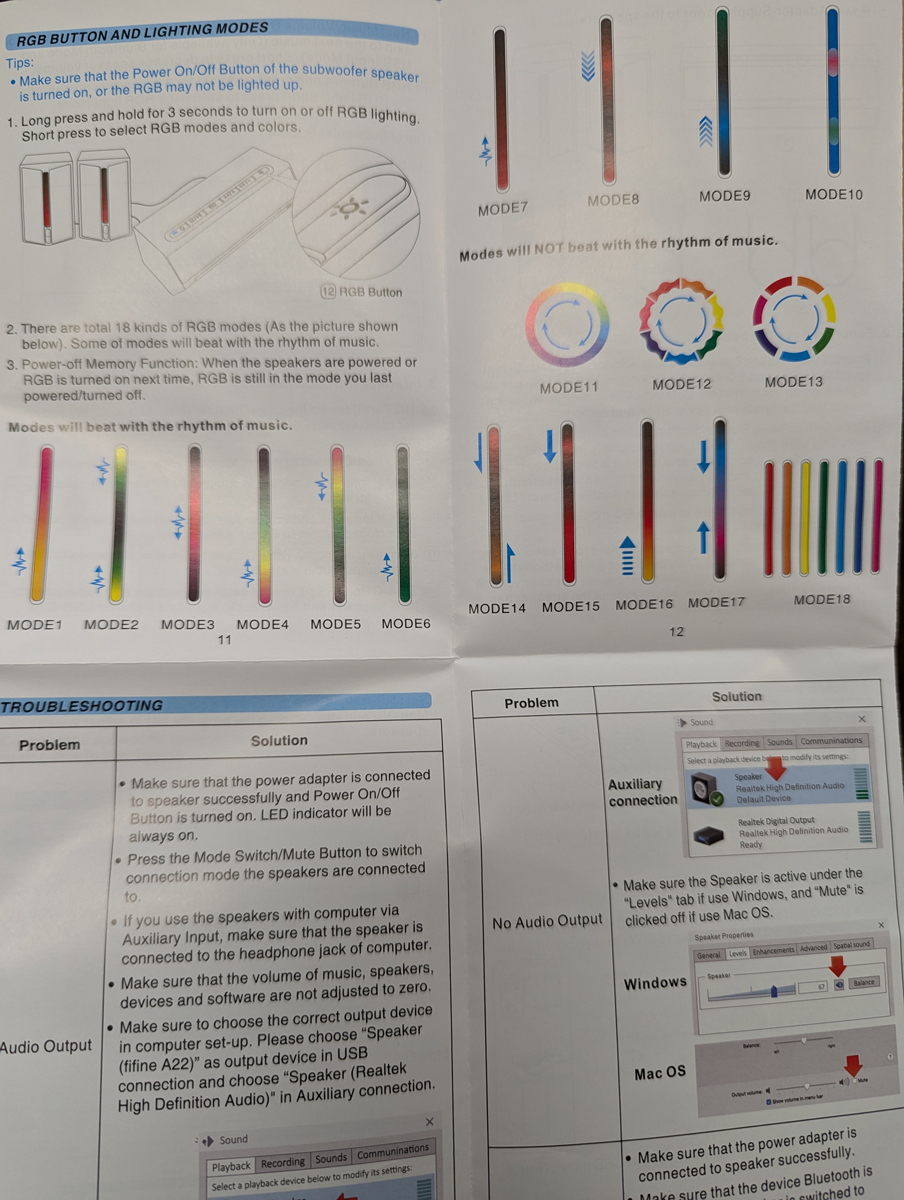From there I continued my review in the most pedestrian fashion; I connected the A22’s auxiliary input of the subwoofer to the audio output of the PC and was off to the races. A long press of the power button brought the system to life complete with a few flashes of the integrated RGB lighting.