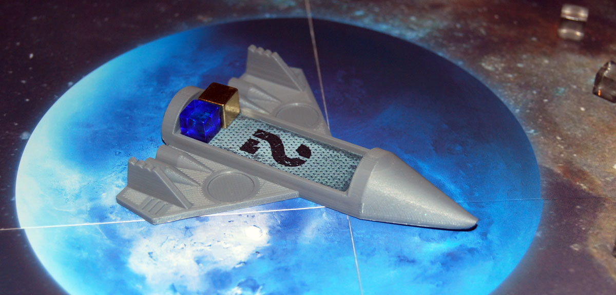 I discovered that the publisher, Waterworks Games, is local to me here in Portland, Oregon. The designers (whom I haven’t met yet) are also local, and they’ve been working on this game through a meetup called the Stumptown Gamecrafters’ Guild, where designers get together to work on game prototypes and playtest games. And now they’ve added the Kickstarter process to their list of topics: last night’s meetup was about the launch of this very Kickstarter campaign, including information about the costs of advertising and manufacturing the game, and the project was launched during the meetup. (I haven’t attended any of the meetups myself but I may eventually find some time on my calendar.) The publisher loaned me a prototype so I could try the game for myself and see what this “no-rulebook” space game was like.