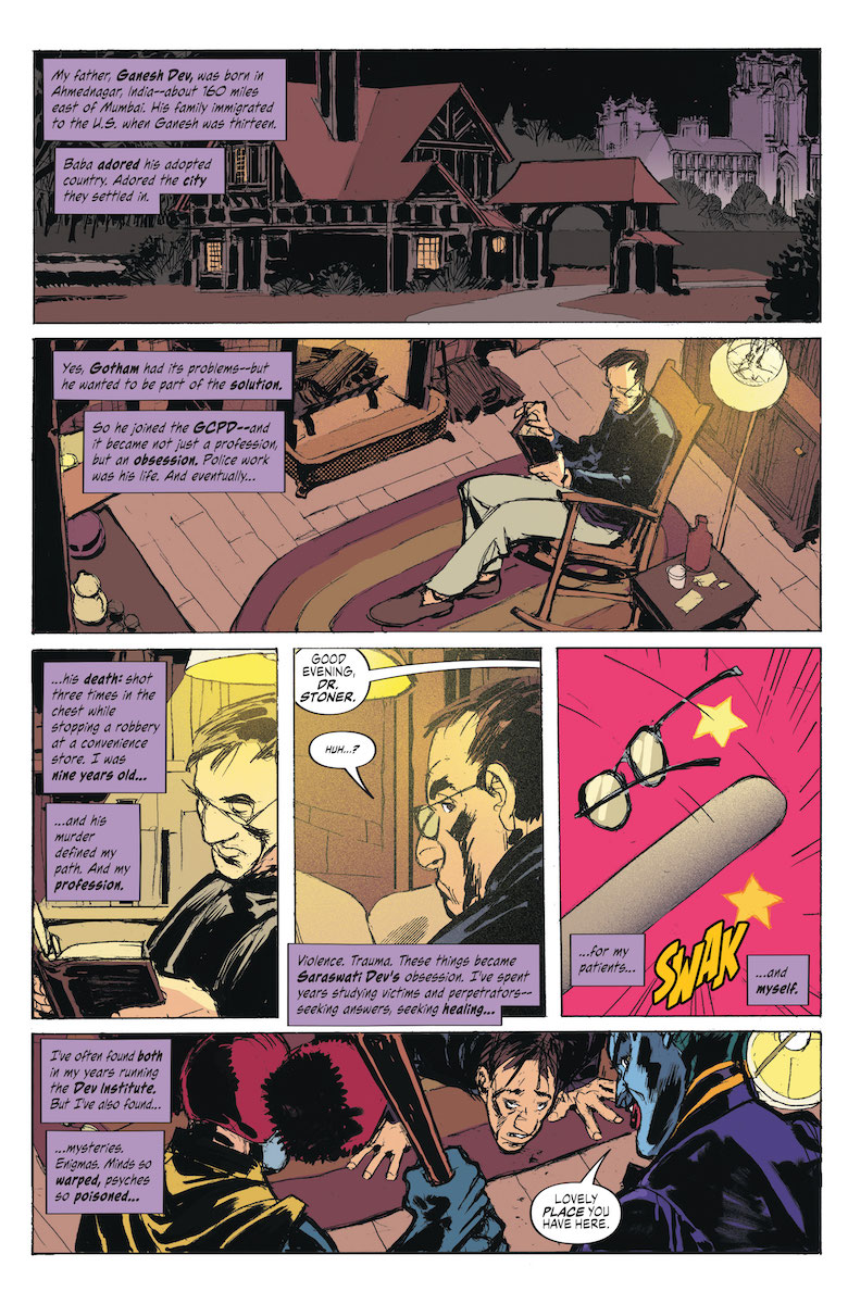 Ray: Most What Ifs and Elseworlds tend to present a worse vision of the future if things were tweaked – after all, where’s the drama in a utopia? But it’s hard to think of something worse than a young boy being beaten to death, which set JM DeMatteis up for an interesting spin in what would happen if Jason Todd lived. We saw a story of Bruce desperately trying to protect his adopted son, who was spiraling into pain and rage in a way that eclipsed what he was already dealing with before his near-death experience. And with the help of Dr. Saraswati Dev, a compassionate mental health expert, they started to help Jason heal – only for him to misunderstand their intentions and head down a dangerous path, one that saw Joker capture him once again and try to turn him into a twisted sidekick. And that’s where we start this final issue – with Joker trying to push Jason into killing an innocent for the first time.