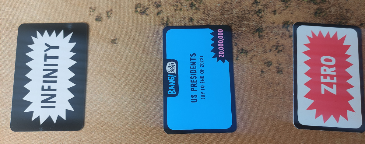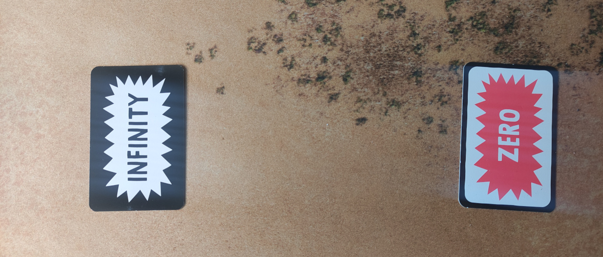 You start by putting down the ‘zero’ and ‘infinity’ cards on either side of the table/playing space.