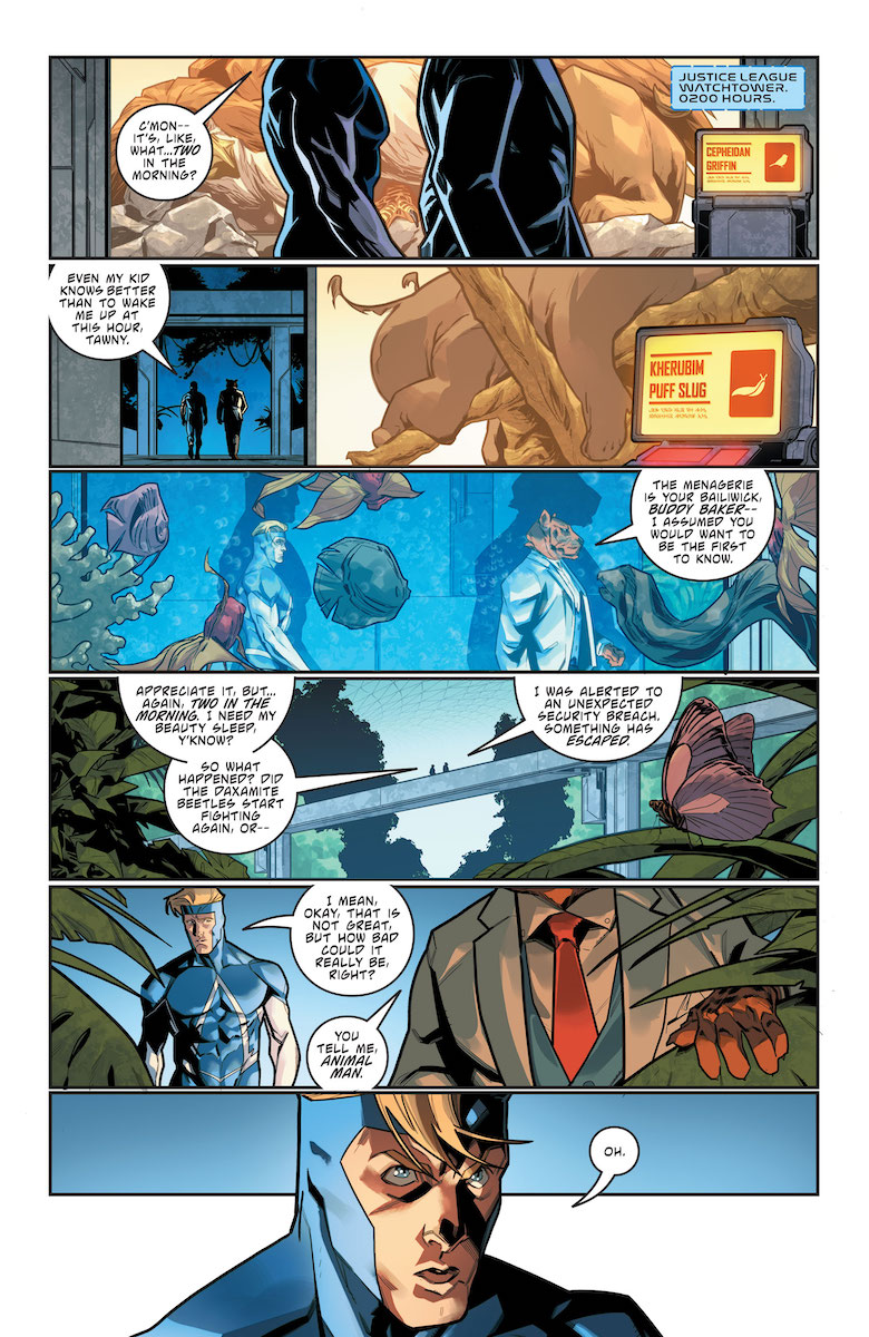 Ray: This book sort of slipped under the radar for a lot of people, but it actually seems like it’s going to be the second unofficial JLU book. While Waid and Mora are telling the huge-scale stories of the new League, Segura and Tormey are taking us into its underbelly as Renee Montoya runs the security team. That’s not to say there isn’t a lot of action here – this book is chaotic in the best way. When we last left off, Challenger of the Unknown Kenn Kawa was horribly wounded and on the brink of death. An investigation reveals that he was attacked by an alien leopard – who seems to have been released by Batwoman, captured on video. Now, in the DCU just because someone’s face is there doesn’t mean its them – but that still means Renee’s ex is suspect #1, and the confrontation that ensues between them is incredibly awkward and likely puts any reunion on the back burner.