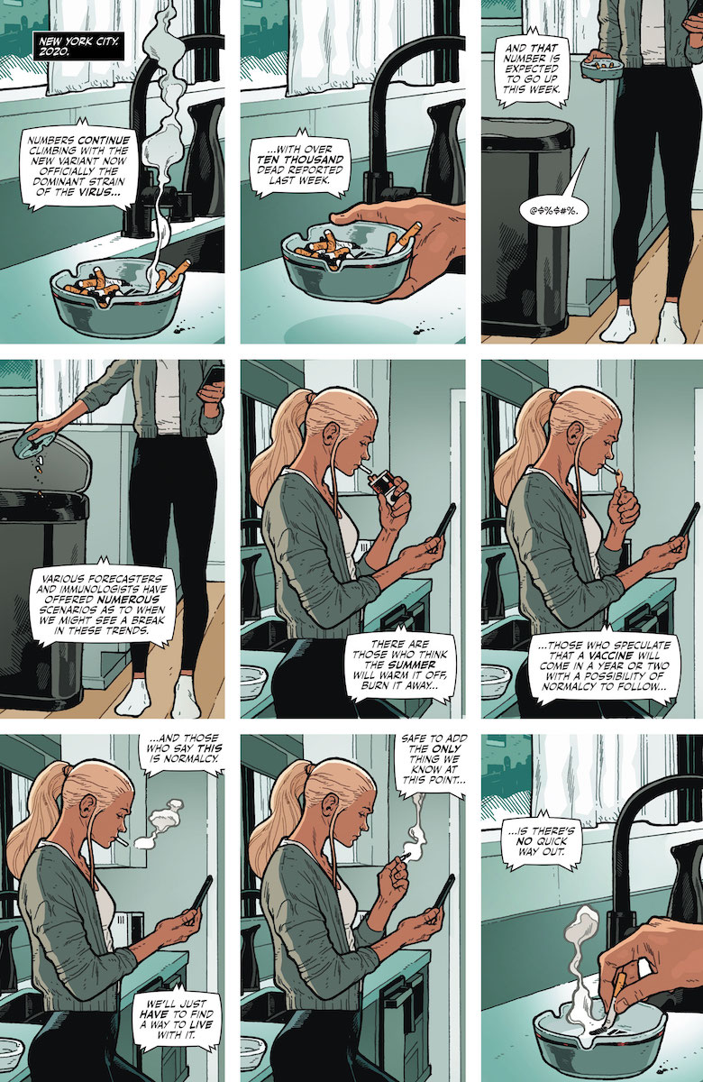 Ray: Tom King continues to unravel the complex and messy world we live in through this comic, with it often feeling more like him exorcising his own feelings than anything else. There’s always a bit of that in his work, and it’s in many ways the special sauce, but never more so than in this one – and that’s made this one of his most divisive wars yet. But this issue shifts the focus from foreign policy to another global crisis – the Covid-19 pandemic. From Jenny Sparks’ perspective, this might be the most infuriating one yet, because she can’t punch her way out of it. She can’t hunt down the architects. All she can do is wait, just like everyone else. The issue’s best scene is where she rails at a mask-wearing Superman, speaking to the frustration everyone’s feeling – as Superman reacts pretty much exactly as we knew he would. It’s strange to think of this era as “history”, but here we are.