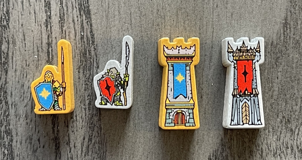 The forces of the Fellowship have gold Units and Fortresses, while the forces of Sauron are grey. The wooden pieces are quite small but easy to handle, and have some lovely screen printing on both sides to add to the visual impact.