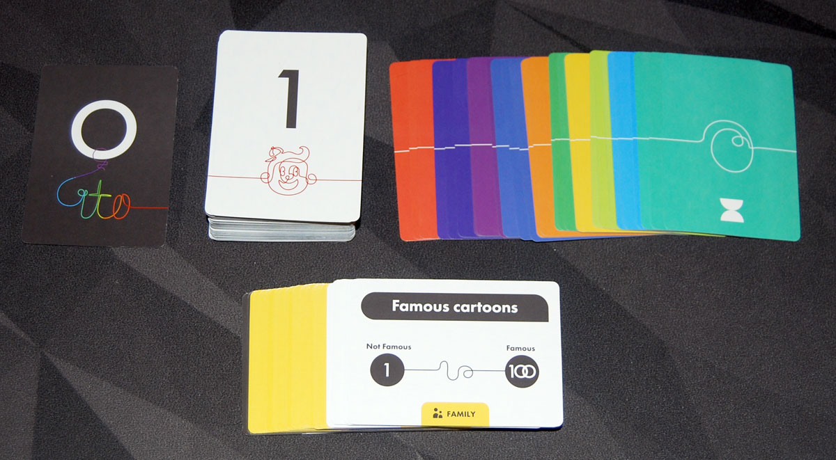 The concept of ranking things is also not uncommon, and I feel like there’s been a slew of them just in the past year. Figment has you line up cards based on how much of a particular color is present; The Gang challenges the group to rank their poker hands; Mind Map challenges you to place random objects on a two-dimensional grid. And, of course, there’s the Timeline series of games where you’re trying to place events in chronological order (or other challenges like placing animals in size order). I think we just have this itch to categorize and rank things, whether it’s cooperative or competitive, and ito is one way to scratch that itch.