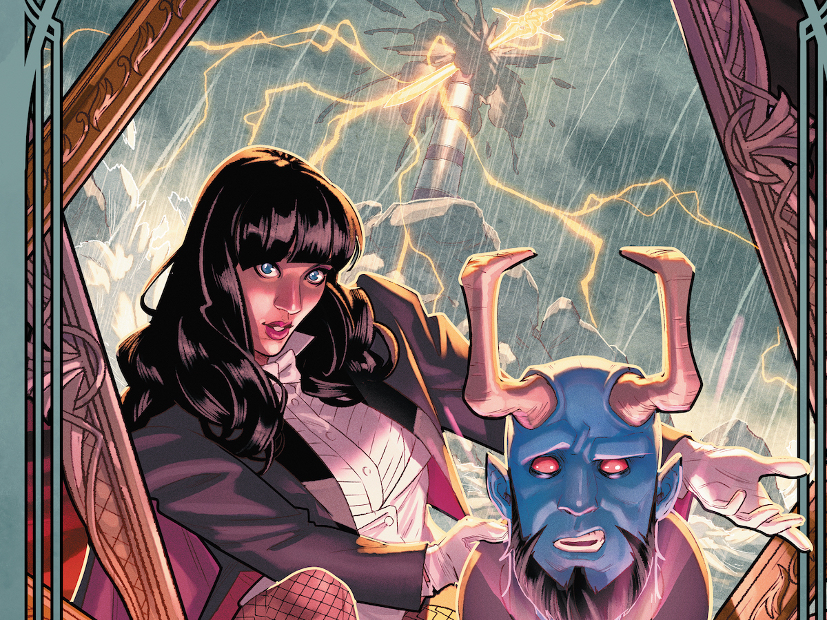 Ray: The first issue of this new writer/artist project by Jamal Campbell blew me away with stunning visuals and a fascinating mystery that found Zatanna being pulled into the paintings of her own studio to rescue her kidnapped crew members from a variety of surreal nightmares. She succeeded – but when she found her youngest employee, Adam, in the captivity of the Lady in White, she tried to rescue him – only for Adam to seemingly betray her and stab her with a magical sword. She now finds herself alone, dying, and with the energy sword screwing up her ability to do magic. She’s able to get herself to the Oblivion Bar with a basic spell, where she’s found by Blue Devil and Detective Chimp (who seems to be having financial trouble). The bond between Zatanna and Blue Devil ever since he was transformed hasn’t really been explored much, but it’s a great subplot here that really fleshes out a character who rarely gets focus.