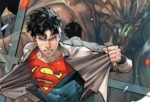 Ray: Al Ewing is pinch-hitting for Tom Taylor on this annual, and it’s not a surprise that his story plays well with Ewing’s tendency for wild, mind-bending sci-fi. This issue begins with a locked-room mystery of the most bizarre kind – an eccentric tech billionaire is found stabbed to death in his own locked compound – one of the most secure, automated homes in the world. As Batman investigates it, he finds all sorts of oddities – a game controller that levitates, a library that contains no actual books but high-tech screens, and a kitchen where the knives all have computer chips – and proceed to try to kill Batman. And that’s where he finds a collection of odd books belonging to a physicist who created a mad theory decades ago.