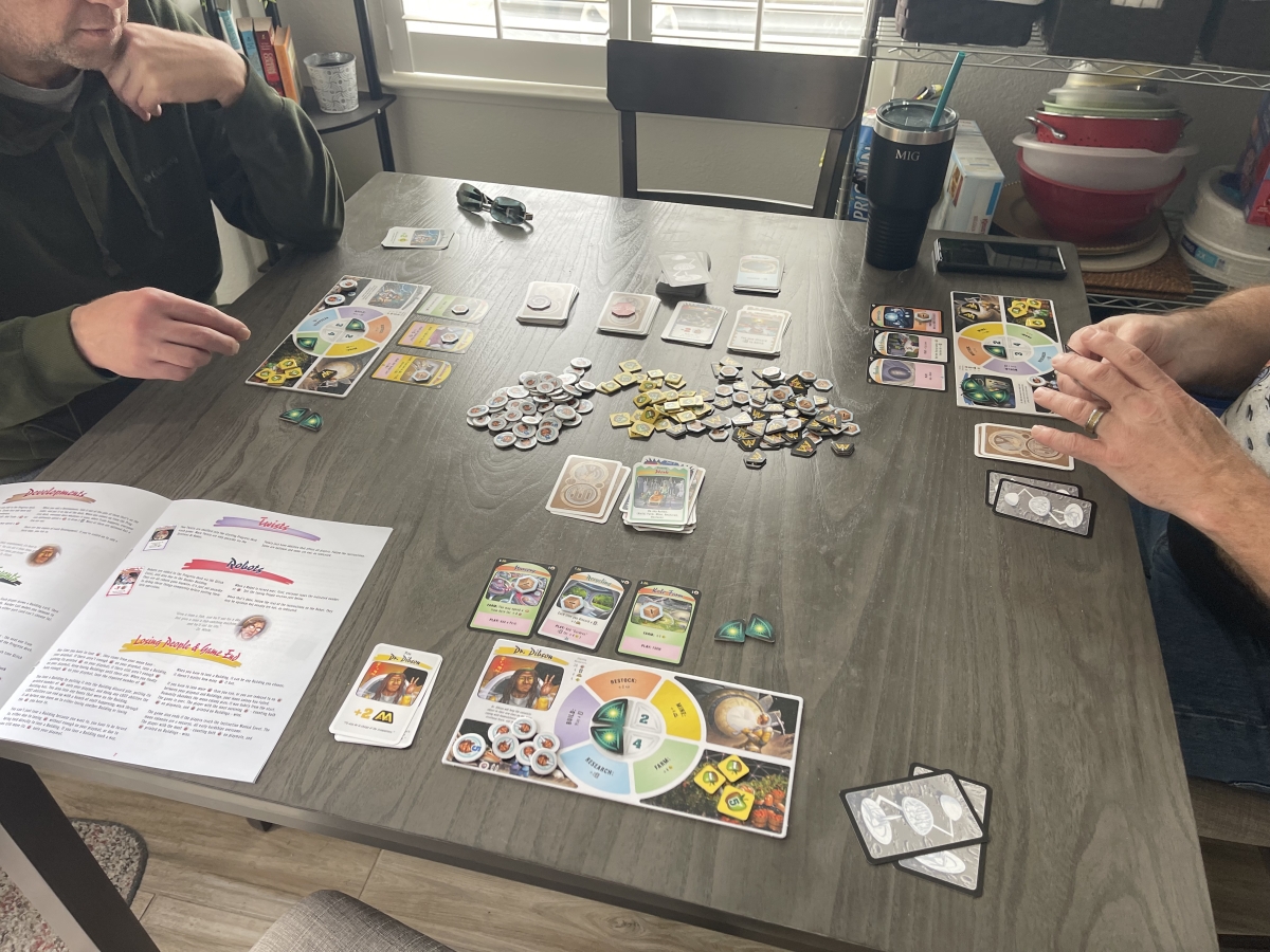 Okay, this one isn’t technically a tabletop game, but it’s also more than just a simple jigsaw puzzle. Murdle: In the Hedge Maze is a murder mystery where you can use the included clues and deduction grid to match up each suspect with a weapon and a location, but some of the clues can only be interpreted by assembling parts of the jigsaw puzzle! It is possible to solve the murder before the puzzle is complete, but you can also use the finished image to trace everyone’s paths through the maze to see which suspect entered the hedge maze. You can read more about it (and other murder mysteries!) in my Stack Overflow column. (JL)