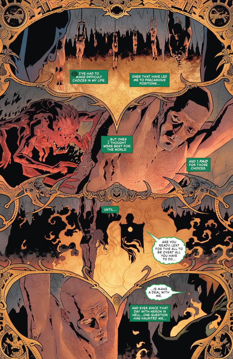 The first round of this battle is kind of a curb-stomp, as it even looks like a mismatch from the title. But was this unfortunate – or part of Luthor’s plan? After all, now he has access to the entire multiverse, and he’s approaching this like a war plan. His choice of form in the second round arouses Etrigan’s suspicions and quickly allows him to take the upper hand, and that sends the fight back to where it began – hell itself, for a final battle that shows just how manipulative Luthor is and how he’s usually thinking a few dozen steps ahead. These two are the star attraction, but it’s also worth mentioning just how much fun the other subplots are, as Superboy Prime and Lois Lane battle to escape the fortress and ensure that its knowledge survives, with Darkseid’s Legion hot on their tail. Superboy Prime joins Doomsday as another surprise breakout star of this run.