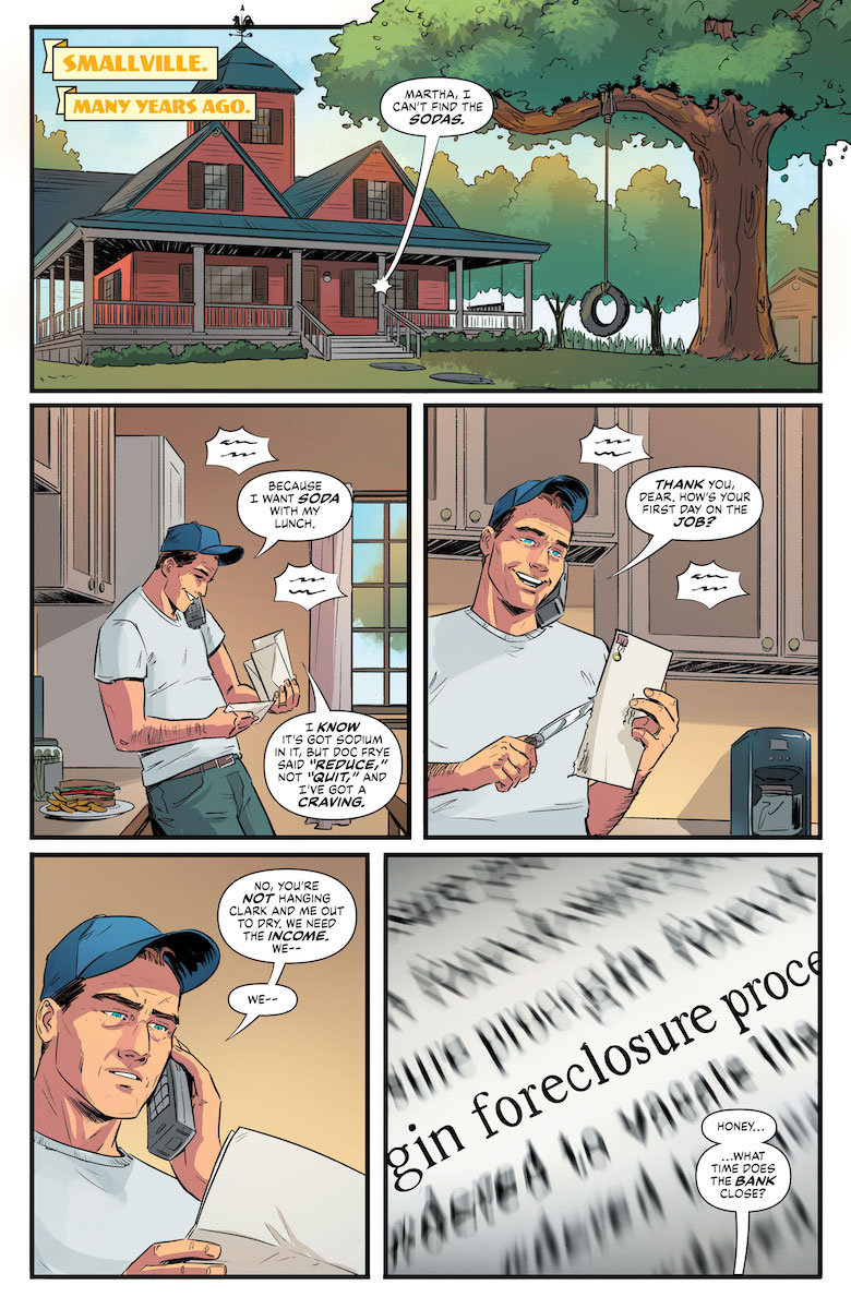This issue is fascinating for the ethical condundrums it poses, with Superboy essentially fighting a powerful enemy with one hand tied behind his back. As Smallville starts to unravel, and farmers take to defending their farms with shotguns, Clark clearly sympathizes with one side but finds that the other side has the law on its side. He’s ultimately left to try to infiltrate the bank itself and find the truth, but can he pull it off in a way that allows him to have the moral high ground when it comes to reveal it? One of my favorite parts of this series so far is that it shows how difficult it is not only to be a superhero but to raise one, with Jonathan and Martha feeling like they have to ensure their son understands right and wrong – even if it comes at great personal cost in this case. But the ending shows that an even bigger moral dilemma might be ahead for Superboy, as Sam Lane comes calling once again.