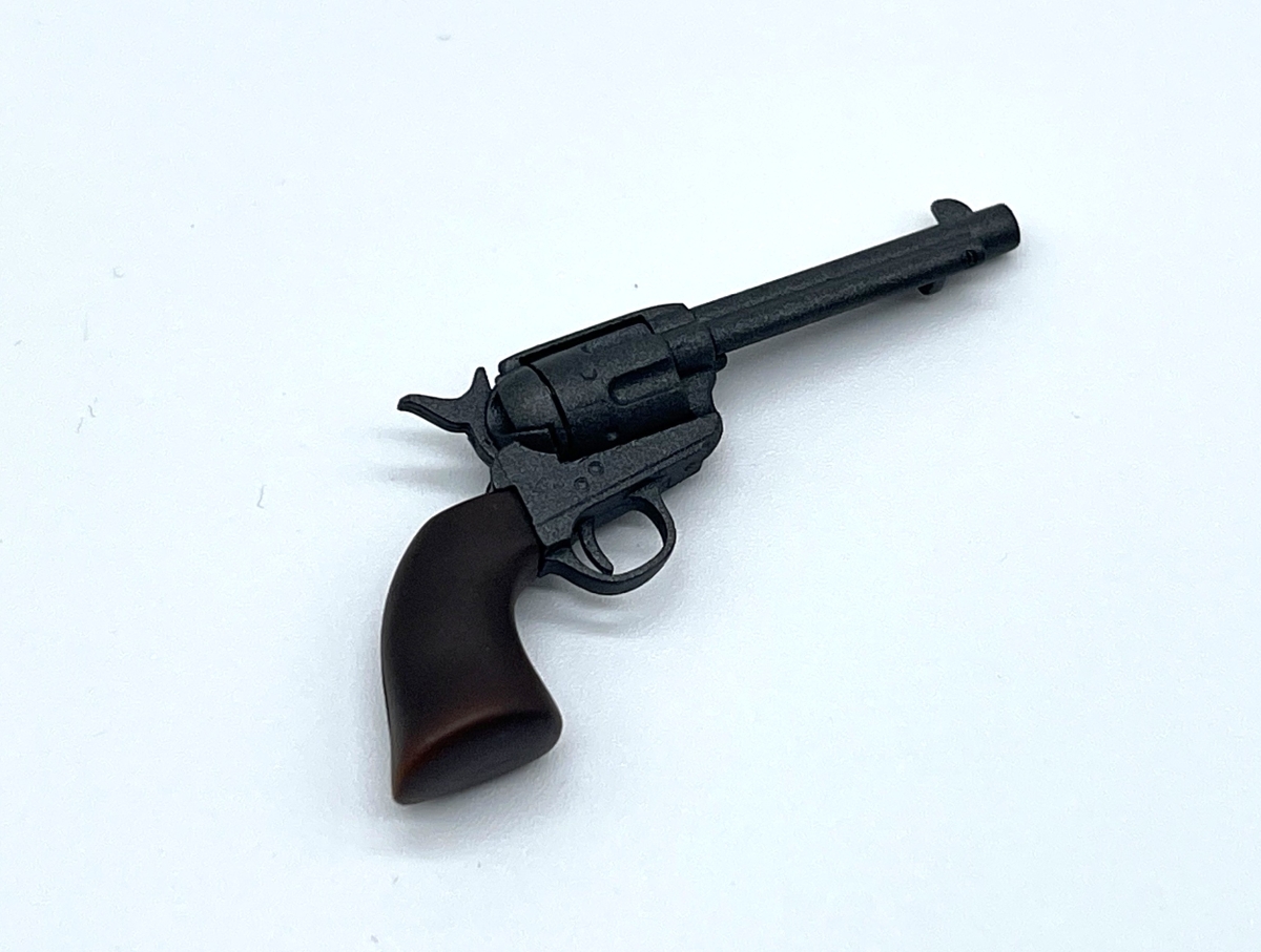 The John Wayne figure comes with two iconic weapons, his Winchester rifle, and the Colt single action Army revolver. The revolver is made with diecast metal parts.