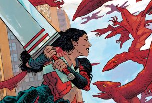 Jo has been targeted by Goldface, a z-list villain in the original verse turned into a ruthless assassin here. It’s almost brilliantly simple that he uses solid gold bullets, bypassing the Lantern’s protection and making Jo vulnerable to what would otherwise be a pretty low-level threat. With her powers not working, she’s forced to resort to some old-school army medicine to save her own life and fend off the villain just enough for the cavalry to arrive. This is one of the most intense and violent issues of the series so far, with the stakes sky-high despite the lack of a huge-scale villian for much of the story. There are also some great flashbacks that show Jo’s complicated past, and the addition of Simon Baz – here a magic-afflicted agent with a very interesting reason for his mask – continues to add new wrinkles. It feels like unlike the other books in the line, we’ve barely scratched the surface of the mystery here.