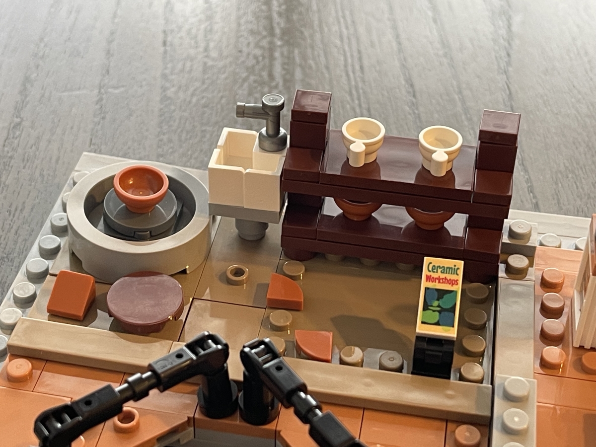 The colors of the bricks work well for an art gallery, but I had some confusion working on the second floor. A couple of the colors are pretty similar, and difficult to tell apart from the illustrations in the instructions. And unfortunately, the same pieces in both colors are found in the same bag. I figured out which bricks to use in which parts of the build, but I did have to pay a bit more attention to the build in that section.