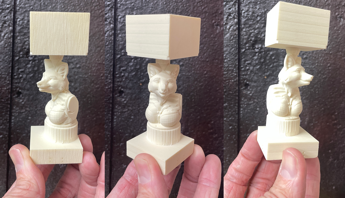And, like with the flat CNC piece, I was blown away by the quality captured after the final pass was complete. This fox character started life as a D&D mini I made on Hero Forge, then scaled it up and cut it to make it into a sall bust.