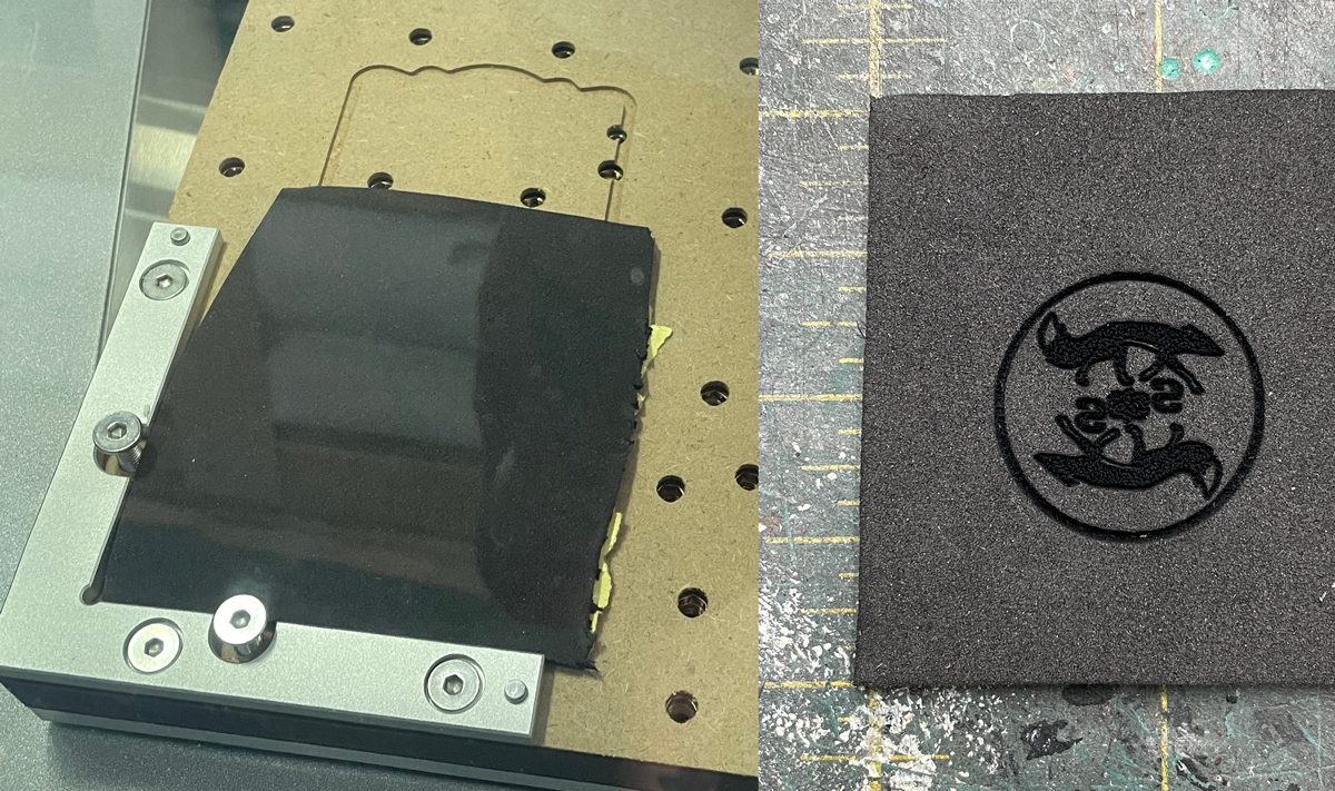I decided to skip the sample laser project and venture out on my own. One of the things I plan to use the laser for is cutting EVA foam, so for my first test, I put a piece of 2mm EVA foam down, looked up the speeds and feeds for the laser and EVA foam and fired away. To my joy, it came out exactly as I was hoping! The logo in he center is only a fraction of a millimeter deep, while the outer circle cut almost all of the way through the foam, making removal a breeze. You may be wondering why its backwards. If you’ll be patient and read on, I promise you’ll find out.