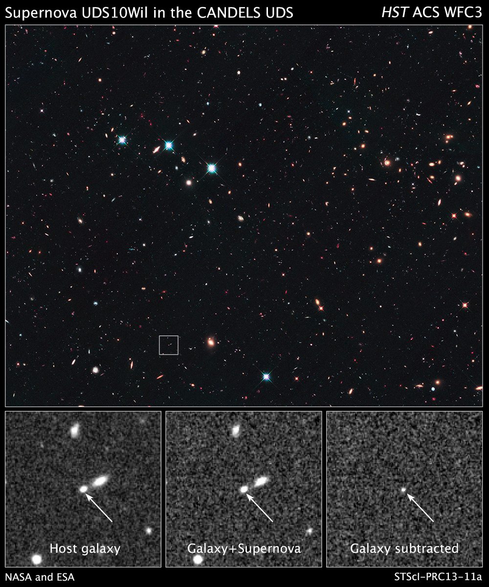 Continue ReadingNASA’s Hubble Space Telescope has found the farthest supernova so far of the type used to measure cosmic distances.